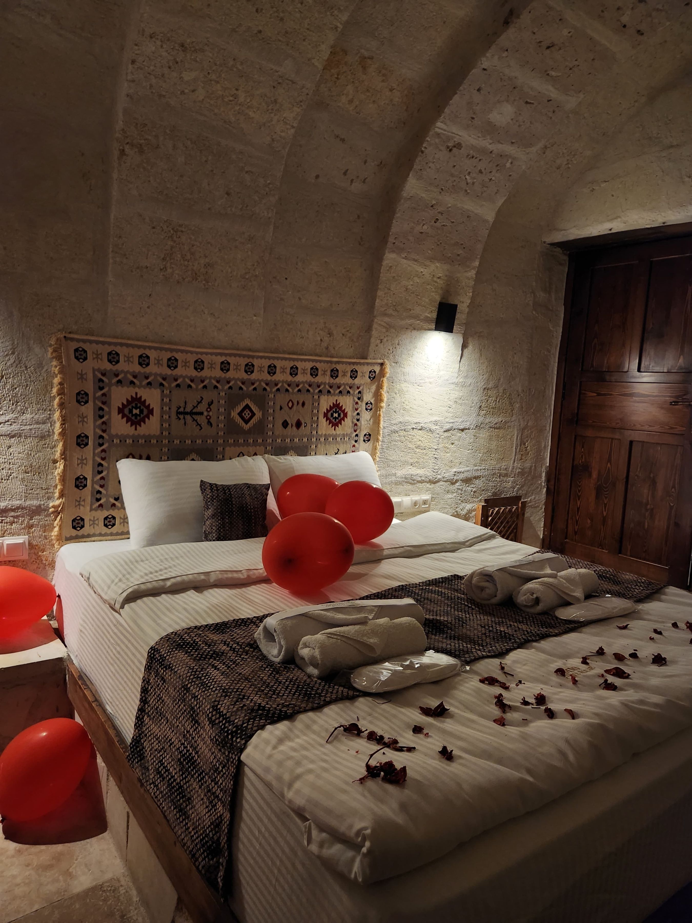 MUHTEŞEM BİR MANZARAYA SAHİP ,KENDİNİ ÖZEL HİSSETMEK İSTEYENLERE ÜRGÜPTE HİZMET VEREN OTELİMİZ LEZİZ VE ZENGİN SERPME KAHVALTI SUNMAKTADIR.